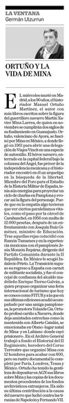El pasado miércoles día 30 de marzo, ha fallecido en Madrid nuestro muy amigo e historiador y miembro del Foro, Manuel Ortuño Martínez, a la edad de 90 años. Nacido en Ayora – Valencia en 1927, era Licenciado en Ciencias Políticas y Sociología y Doctor en Historia de América por la Universidad Complutense de Madrid. Gran experto en la vida de Xavier Mina, tenía editados numeroso libros sobre la vida del guerrillero.