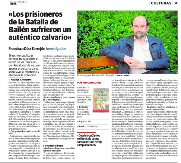 Entrevista a Francisco Luis Díaz Torrejón, miembro del Foro para el Estudio de la Historia Militar de España y autor de Las águilas vencidas de Bailén en el Ideal de Granada”. Díaz Torrejón es historiador y autor de numerosos libros sobre la Guerra de la Independencia