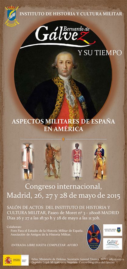 Os recordamos que los próximos, martes 26, miércoles 27 y jueves 28 tendrá lugar en el Instituto de Historia y Cultura Militar en Madrid el Congreso Internacional «Bernardo de Gálvez y su tiempo». El Congreso está organizado por el Instituto de Historia y Cultura Militar, con la colaboración la Asociación de Amigos de la Historia Militar y el Foro para el Estudio de la Historia Militar de España.